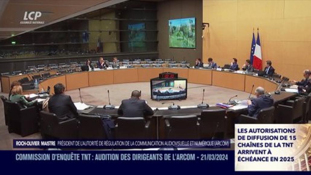 La commission d'enquête mise en place pour faire la lumière sur l'attribution et le contrôle des fréquences TNT approche de la fin. Après avoir auditionné Vincent Bolloré, Cyril Hanouna a ou encore des responsables et journalistes de CNews, les députés entendent le président de l'ARCOM (ex CSA) Roch-Olivier Maistre. Fin février 'Autorité de régulation de la communication audiovisuelle et numérique Le 13 février dernier, le Conseil d'État a enjoint à l'Arcom de durcir son contrôle sur les chaînes de la TNT en matière de pluralisme de l'information. Retrouvez cette audition sur LCP Assemblée nationale.