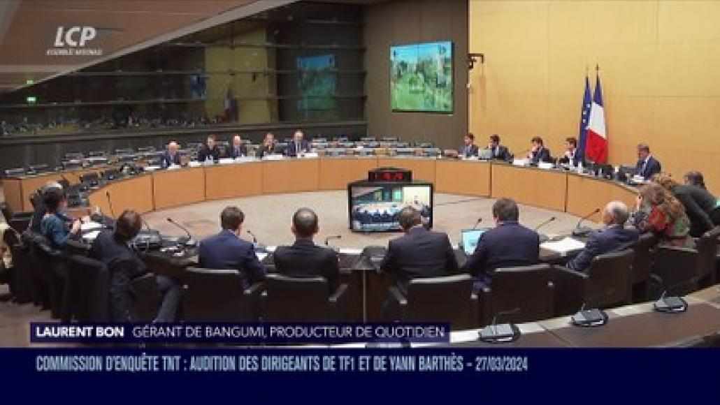 La commission d'enquête sur l'attribution des fréquences de la TNT auditionne Ara Aprikian, directeur général adjoint des contenus du groupe TF1 et Yann Barthès, présentateur de Quotidien et cofondateur de la société Bangumi, qui produit l'émission diffusée sur TMC (groupe TF1). Cette audition a lieu alors que des députés du Rassemblement national ont accusé l'animateur de ne pas inviter les membres de leur parti dans son émission. L'Assemblée nationale a déjà auditionné le président de l'ARCOM (ex CSA) Roch-Olivier Maistre, Vincent Bolloré, Cyril Hanouna ou encore des responsables et rédacteurs en chef de CNews. Une audition à retrouver sur LCP Assemblée nationale.