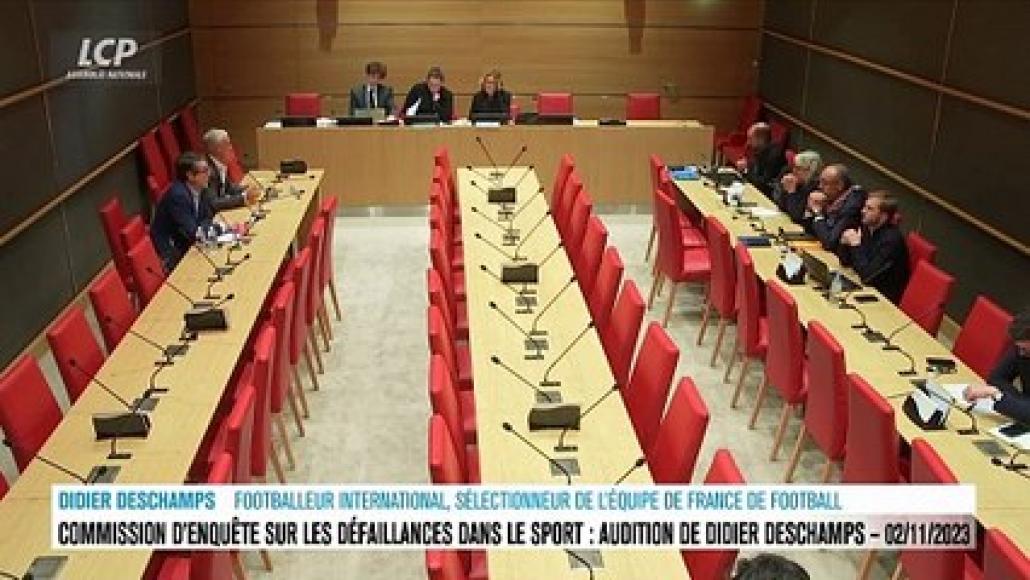 Un invité exceptionnel à l'Assemblée nationale. Didier Deschamps est auditionné par la commission d'enquête parlementaire chargée de faire la lumière sur les défaillances de fonctionnement au sein des structures et fédérations sportives françaises. Les députés interrogeront le sélectionneur, en poste depuis 2012, ancien international français de football et double champion du monde, au titre de leur pouvoir de contrôle. La commission d'enquête, qui cherche à comprendre comment des scandales de violences sexuelles, de discrimination ou de corruption ont touché le monde du sport ces dernières années, doit rendre son rapport fin décembre après six mois de travaux et d'auditions. Le 13 septembre 2023, Laurent Blanc, son prédécesseur à la tête de l'équipe de France, avait déjà été auditionné. Une séance à voir ou revoir sur LCP Assemblée nationale.