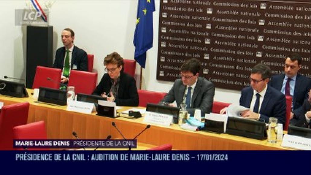 La commission des Lois de l'Assemblée nationale auditionne Marie-Laure Denis, présidente de la Commission nationale de l'informatique et des libertés (CNIL) depuis 2019, et dont le mandat s'achève en février 2024. Députés et sénateurs doivent valider par un vote sa reconduction à la tête de l'autorité administrative indépendante, le président de la République ne pouvant procéder à une nomination lorsque l'addition des votes négatifs dans chaque commission représente au moins trois cinquièmes des suffrages exprimés (article 13 de la Constitution). Retrouvez cette audition en intégralité sur LCP Assemblée nationale.