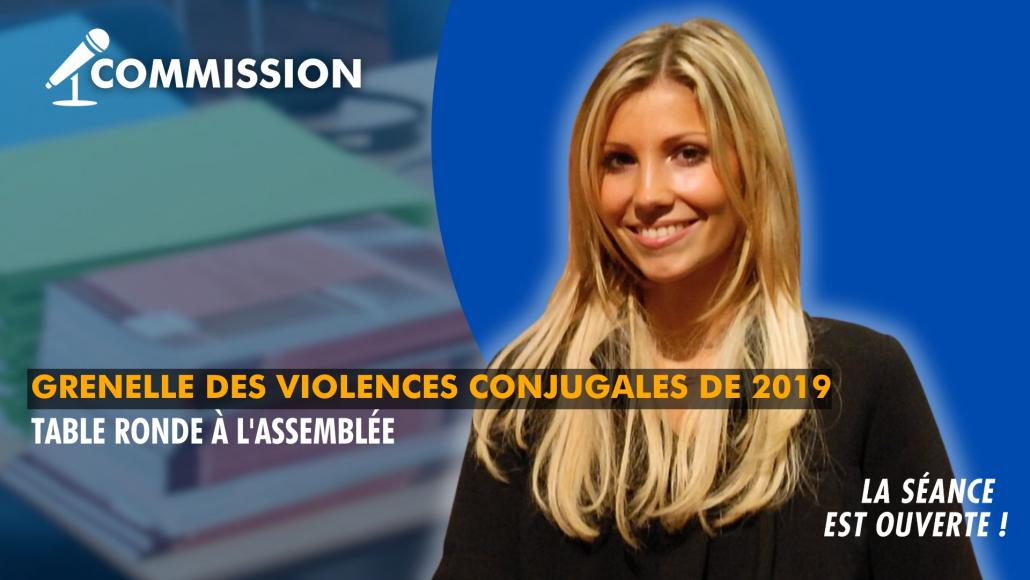 Le Grenelle des violences conjugales s'est tenu en France du 3 septembre au 25 novembre 2019. Après plusieurs tables rondes, le gouvernement a présenté 46 mesures visant à lutter contre les violences conjugales, qui touche en moyenne chaque année 230 000 femmes. Le 26 novembre, la délégation aux droits des femmes de l'Assemblée nationale organise une table ronde : "Six ans après, quel bilan pour le Grenelle des violences conjugales ?". À cette occasion, les députés auditionnent Aurore Bergé, ministre chargée de l'Égalité entre les femmes et les hommes, Alexandra Rosenfeld, journaliste victime de violences conjugales, Anne-Cécile Mailfert, présidente de la Fondation des femmes, Mathieu Plain, journaliste, Olivier Blondel, commissaire de police et Charlotte Beluet, haute fonctionnaire à l'égalité et à la diversité.