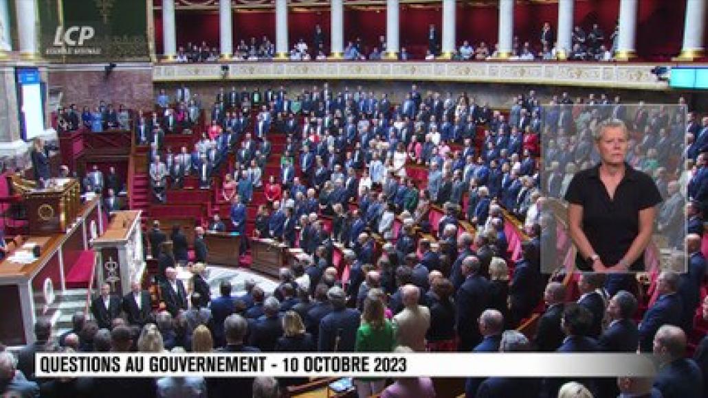 L'actualité internationale a percuté la séance de ce mardi 10 octobre. La présidente de l'Assemblée nationale a rendu hommage aux victimes des attaques terroristes du Hamas contre Israël, avant d'inviter la représentation nationale à observer une minute de silence. Les évènements survenus au Proche-Orient ont fait l'objet des dix premières questions au gouvernement, posées par chacun(e) des président(e)s de groupe.