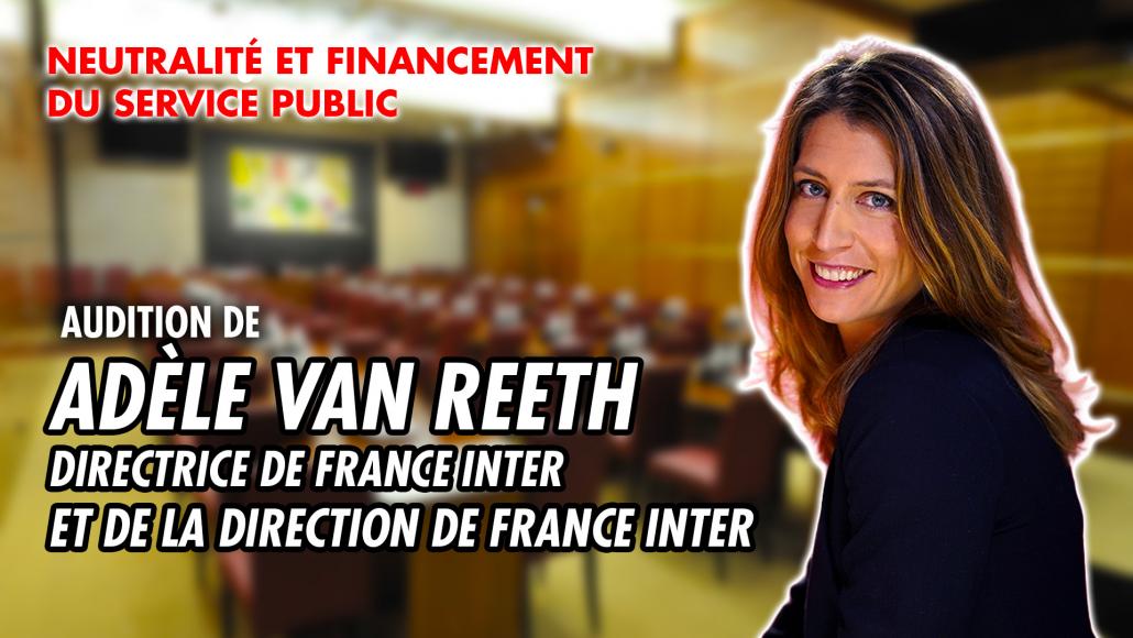 La commission d'enquête sur la neutralité, le fonctionnement et le financement de l'audiovisuel public, créée à la demande du groupe d'Éric Ciotti (Union des droites pour la République), poursuit ses travaux. Les députés auditionnent Adèle Van Reeth, directrice de France Inter, accompagnée de Laurent Goumarre, directeur des programmes, Philippe Corbé, directeur de l'information et Bertrand Rutily, directeur des antennes et de la production.