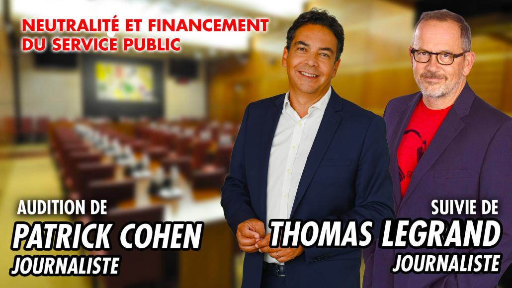 C'est dans ce cadre que sont auditionnés successivement les journalistes Patrick Cohen et Thomas Legrand par la commission d'enquête, son président Jérémie Patrier-Leitus (HOR) et son rapporteur Charles Alloncle (UDR).