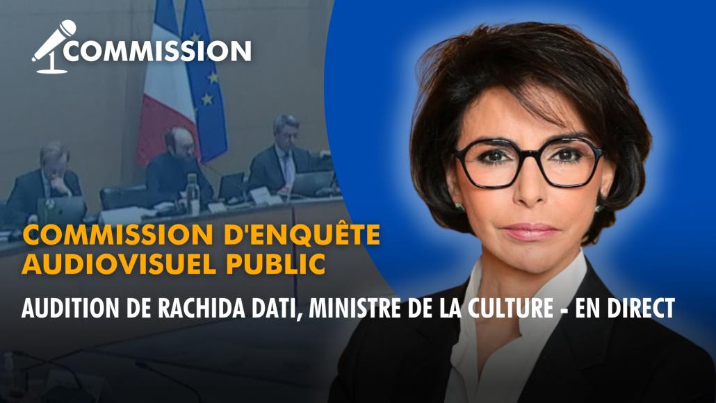 La commission d'enquête sur la neutralité, le fonctionnement et le financement de l'audiovisuel public, créée à la demande du groupe d'Éric Ciotti (Union des droites pour la République), poursuit ses travaux. Ce 5 février, les députés auditionnent Rachida Dati, ministre de la Culture, qui portait en 2025 la réforme de l'audiovisuel public, prévoyant la création d'une holding exécutive. Une réforme dont le cheminement parlementaire, qui devait se poursuivre à l'automne, a été suspendu en raison des discussions budgétaires et de la situation politique de la France. Retrouvez les temps forts des échanges avec le président de la commission d'enquête Jérémie Patrier-Leitus (HOR), le rapporteur Charles Alloncle (UDR) et les députés.