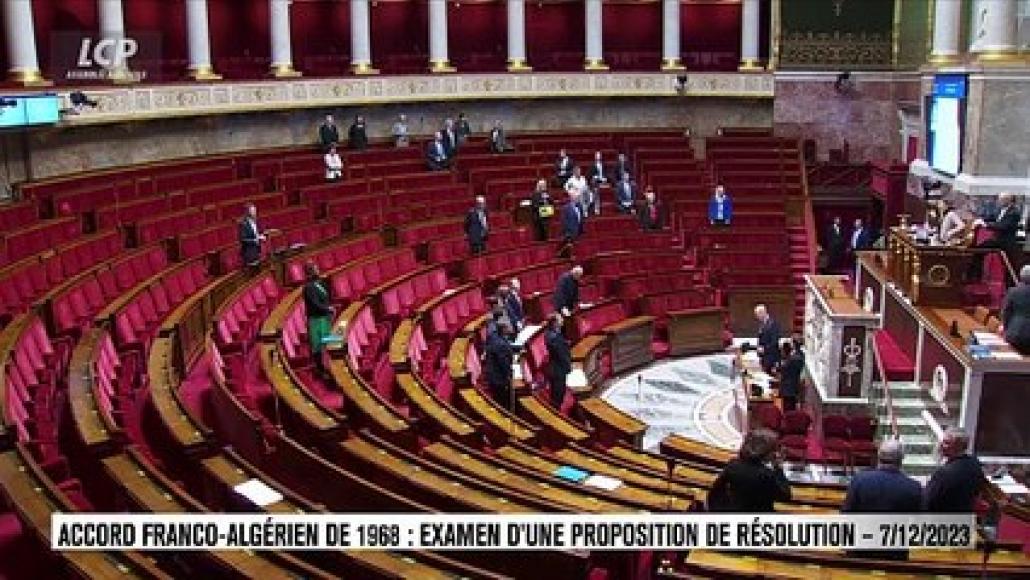 L'Assemblée nationale examine en séance une proposition de résolution appelant à la dénonciation par les autorités françaises de l'accord franco-algérien du 27 décembre 1968. Ce texte, sensible, est examiné dans le cadre de l'ordre du jour réservé au groupe Les Républicains. La circulation, le séjour et le travail des Algériens en France sont régis de manière spécifique par l'accord bilatéral de 1968. Ce dernier facilite l'entrée des Algériens en France, qui bénéficient par ailleurs d'une liberté d'établissement pour exercer une activité de commerçant ou une profession indépendante. Les ressortissants algériens peuvent accéder plus rapidement que les ressortissants d'autres États à la délivrance d'un titre de séjour valable 10 ans.