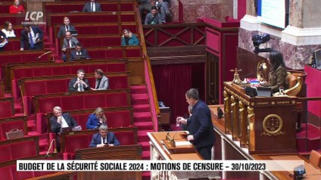 Les oppositions ont déposé deux motions de censure après le recours à l'article 49.3 de la Constitution, déclenché par Élisabeth Borne sur la deuxième partie du budget de la sécurité sociale (« recettes et équilibre général ») en séance publique. L'un de ces textes est porté par le groupe La France Insoumise, avec le soutien des autres groupes de gauche. Le second est défendu par le Rassemblement national. Les deux sont discutés et soumis au vote ce lundi 30 octobre en séance publique. L'adoption d'une motion de censure conduit à renverser le gouvernement en place, événement survenu une seule fois dans l'histoire de la cinquième République, en 1962. Revivez le débat en séance publique sur LCP Assemblée nationale.