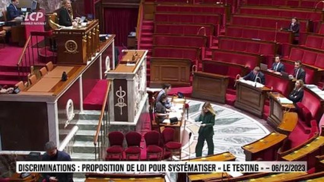 L'Assemblée nationale examine en séance publique une proposition de loi pour lutter contre les discriminations "par la pratique de tests individuels et statistiques". Ce texte, porté par Marc Ferracci (Renaissance), vise à "systématiser la pratique de ces deux types de tests" et à "sécuriser juridiquement le principe du 'name and shame'". Concrètement, un grand nombre de candidatures fictives seront envoyées à une entreprise ou un organisme cible, afin d'étudier la réaction de ces derniers. Le texte est examiné dans le cadre de la semaine dite « de l'Assemblée nationale », où l'ordre du jour est fixé par les députés.