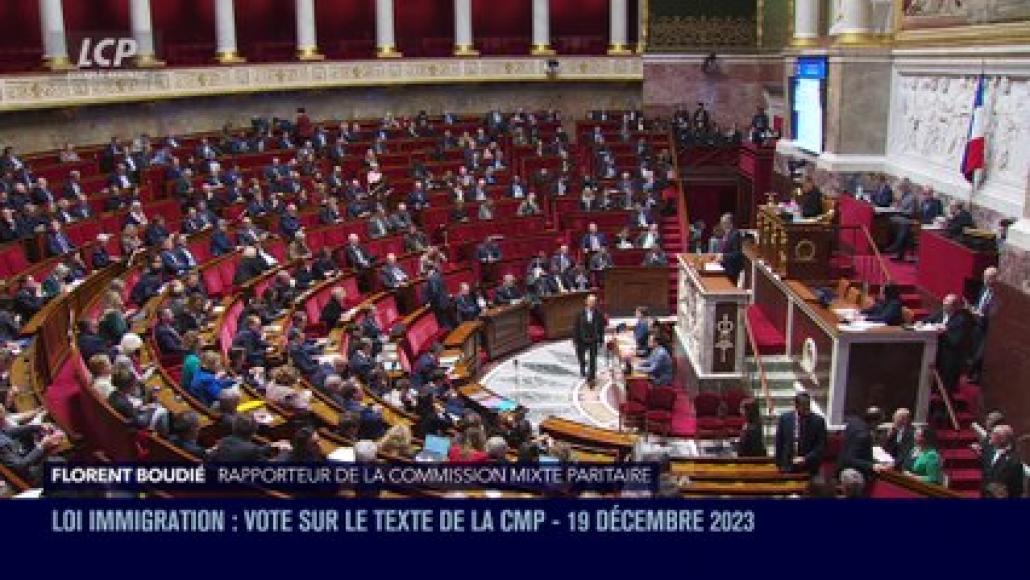 L'Assemblée nationale a adopté, mardi 19 décembre, la version du projet de loi sur l'immigration issue de la commission mixte paritaire qui s'était achevée un peu plus tôt dans la journée. Le texte a recueilli l'approbation des Républicains et du Rassemblement national, tandis qu'une vingtaine de députés de la majorité présidentielle ont voté contre.